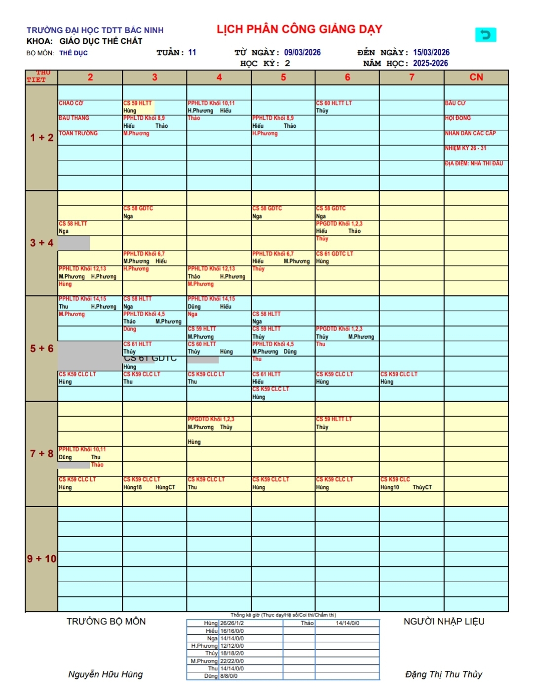 Lịch công tâc tuần 11