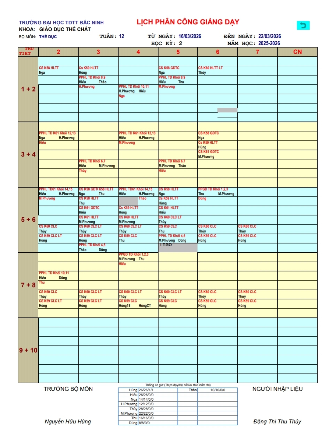 Lịch công tác tuần 12