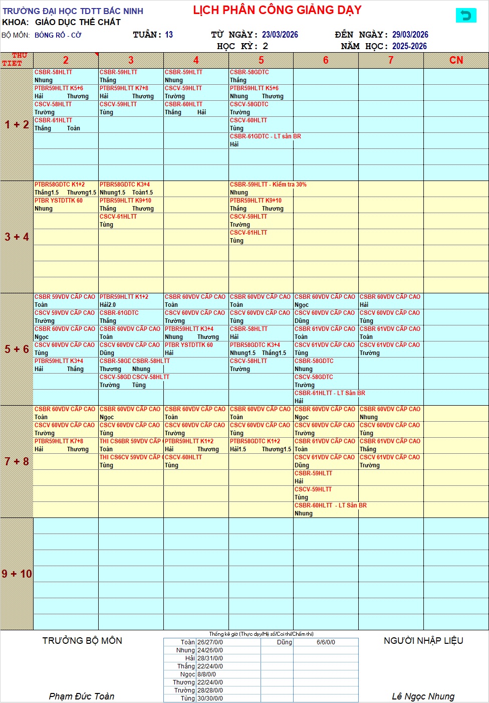 Lịch công tác tuần 13