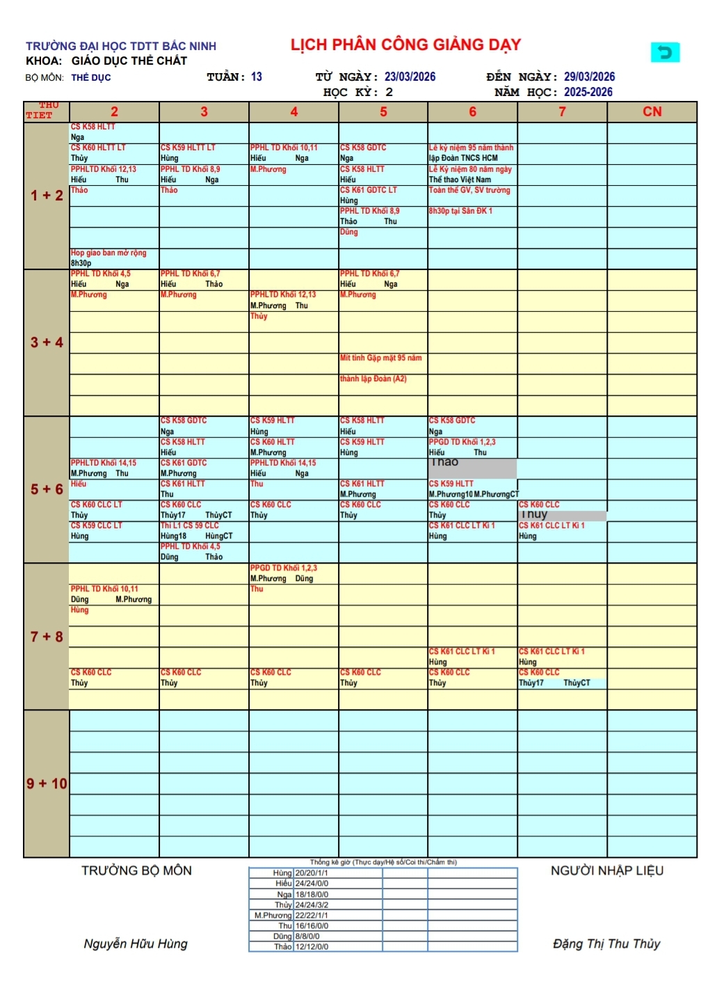Lịch công tác tuần 13