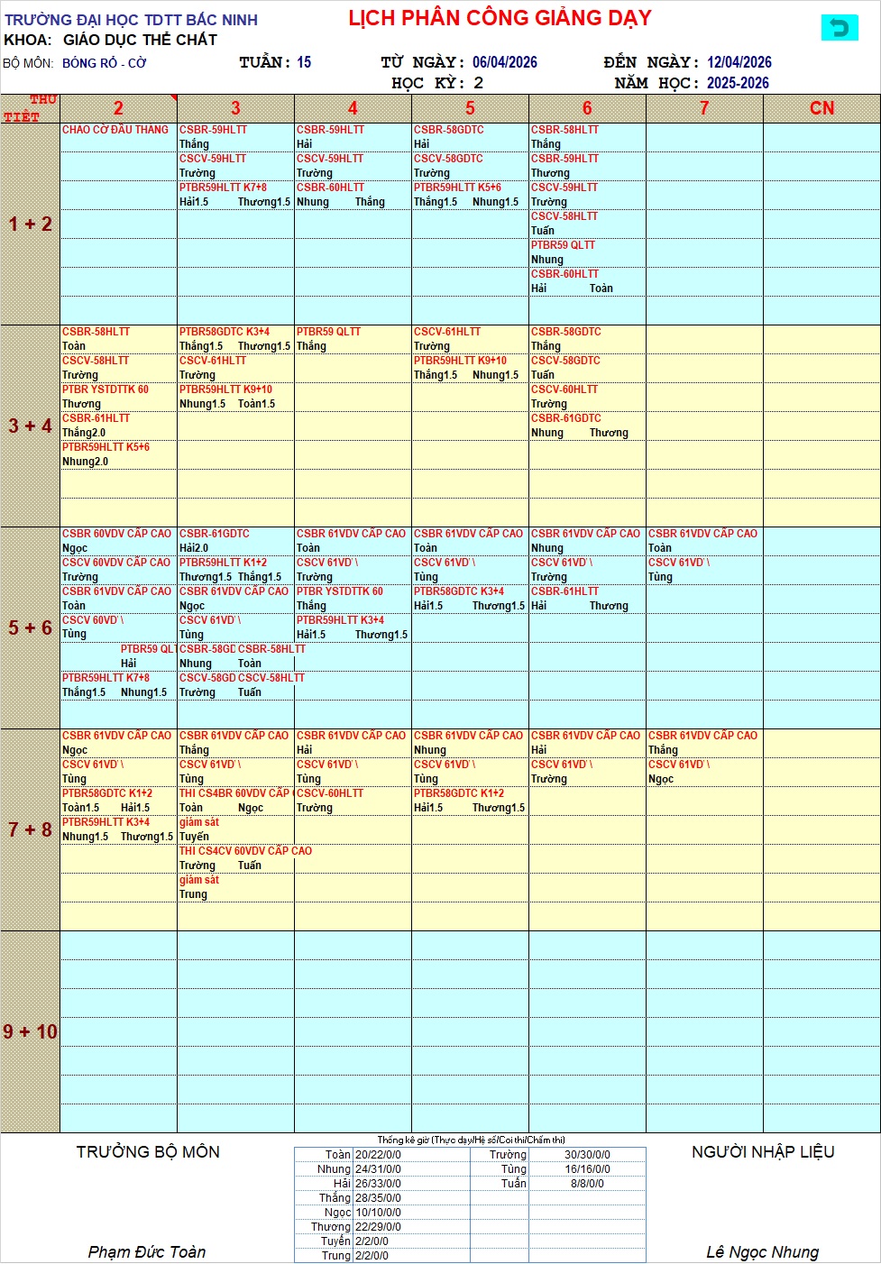 LỊCH CÔNG TÁC TUẦN 15