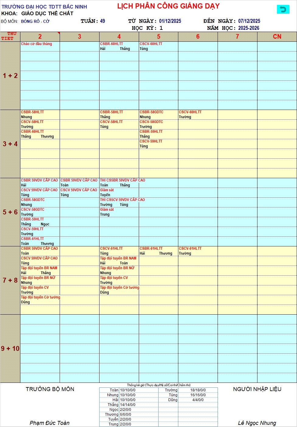 LỊCH CÔNG TÁC TUẦN 49