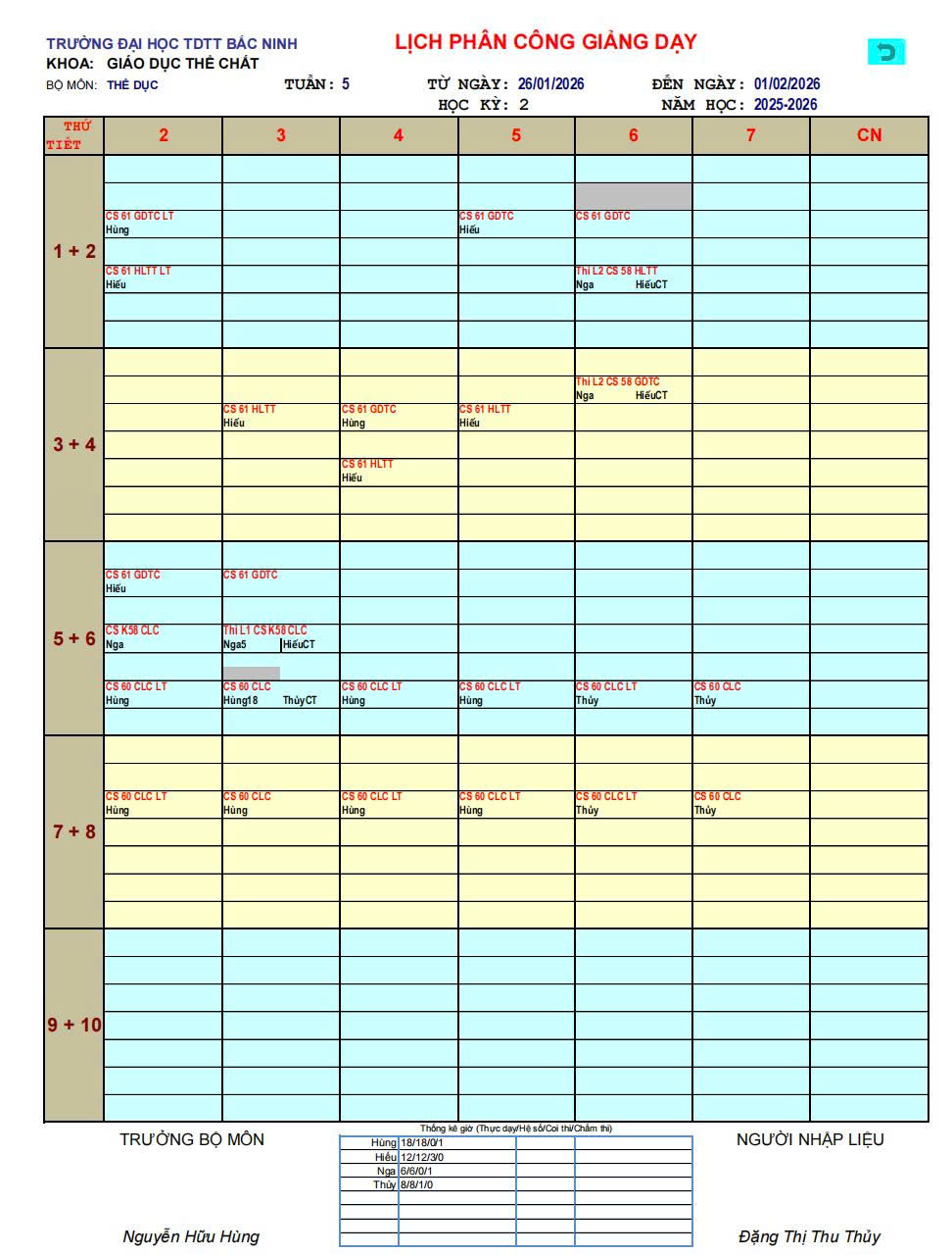 Lịch công tác tuần 5