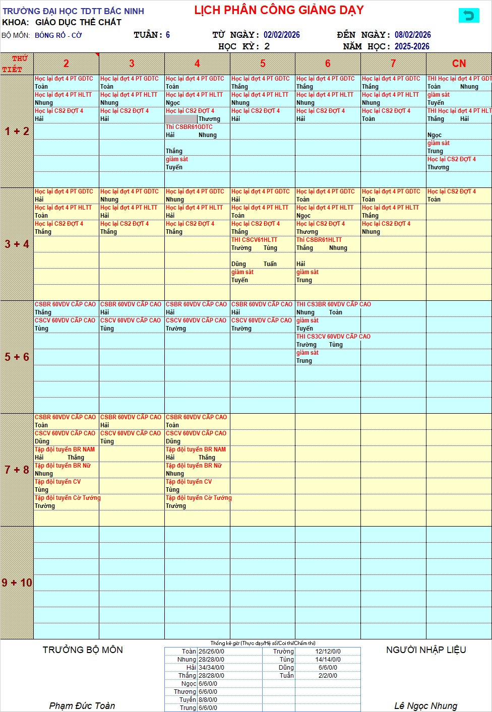 LỊCH CÔNG TÁC TUẦN 6