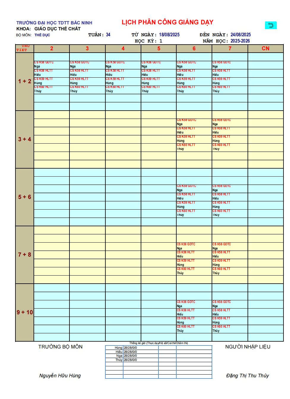 Lịch tuần 34