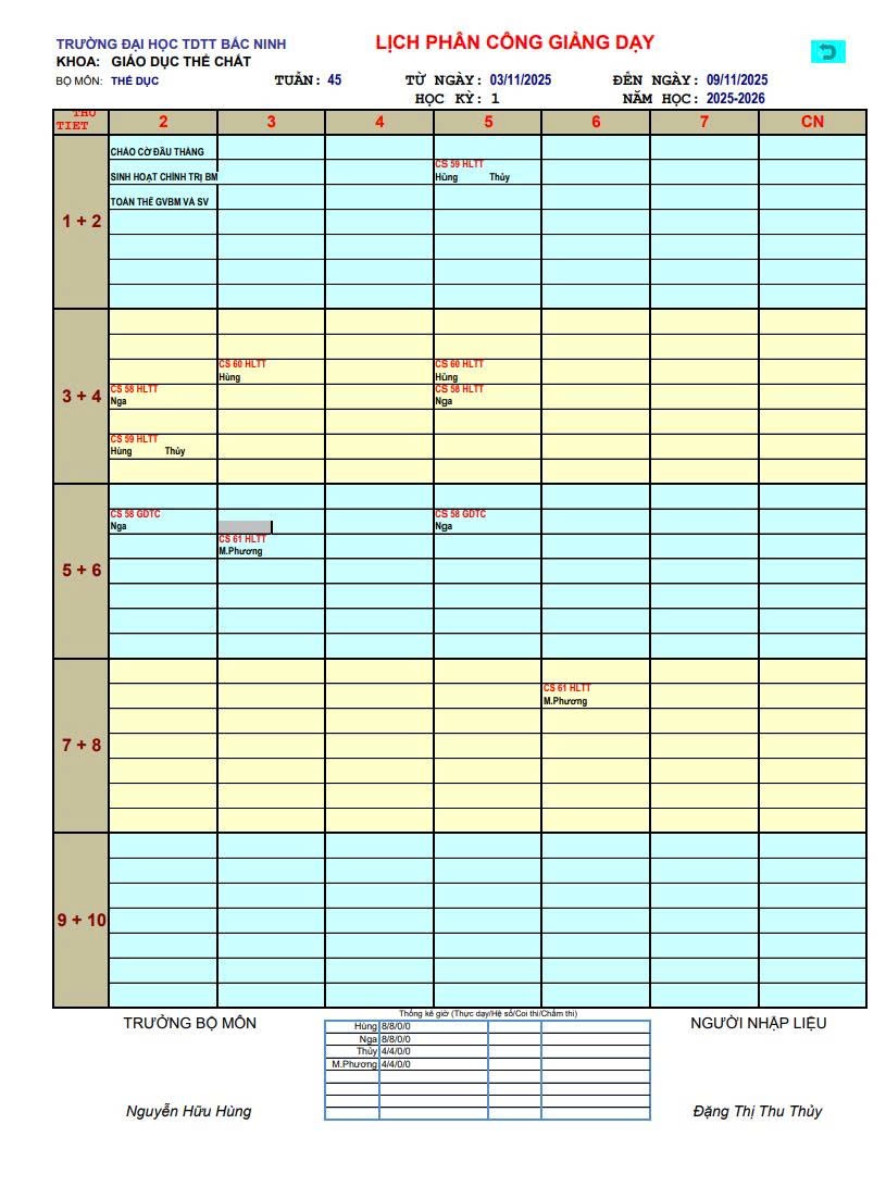 Lịch công tác Tuần 43