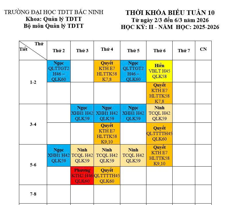 Thời khóa biểu tuần 10