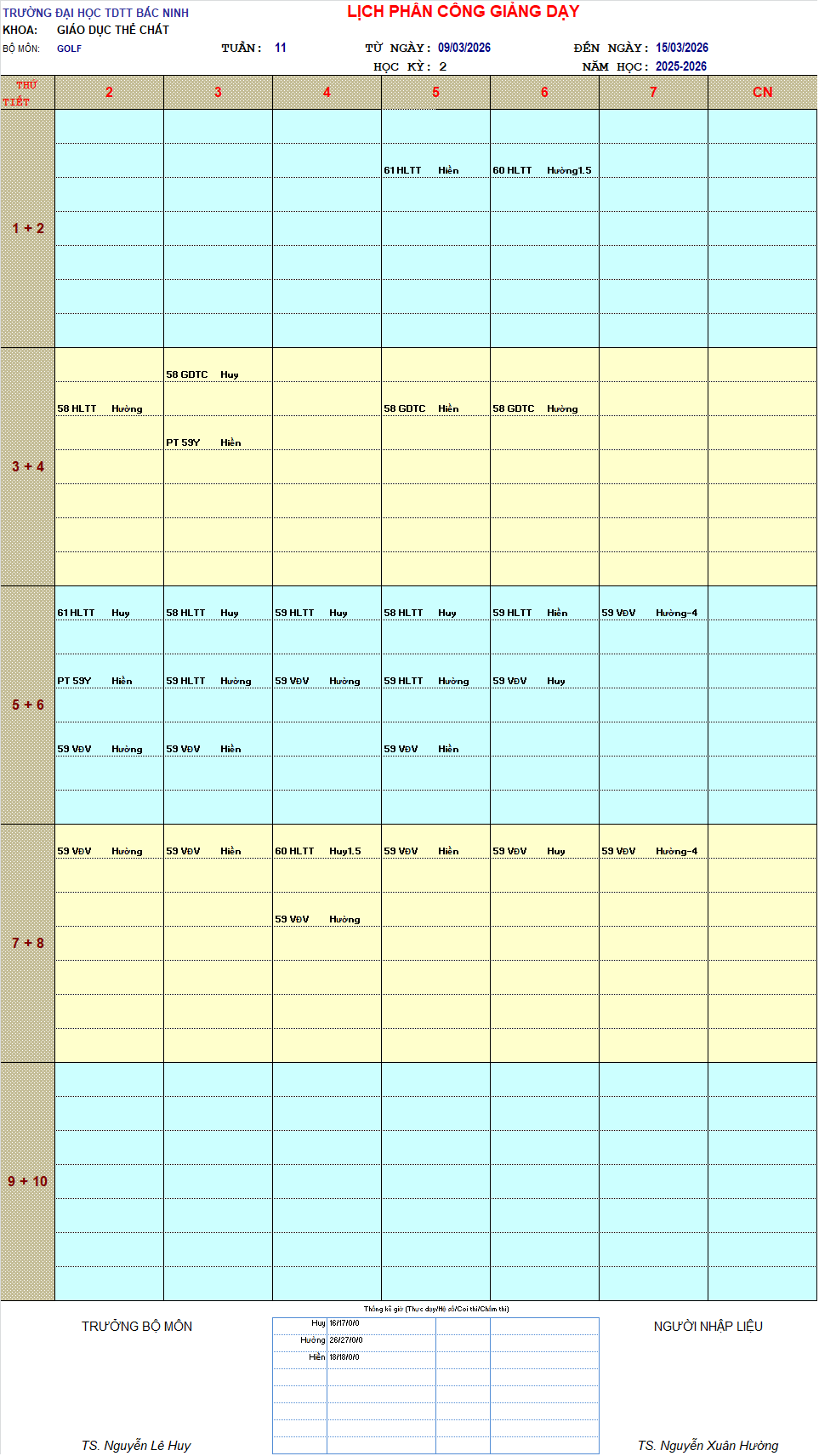 THỜI KHÓA BIỂU TUẦN 11