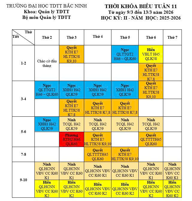 Thời khóa biểu tuần 11