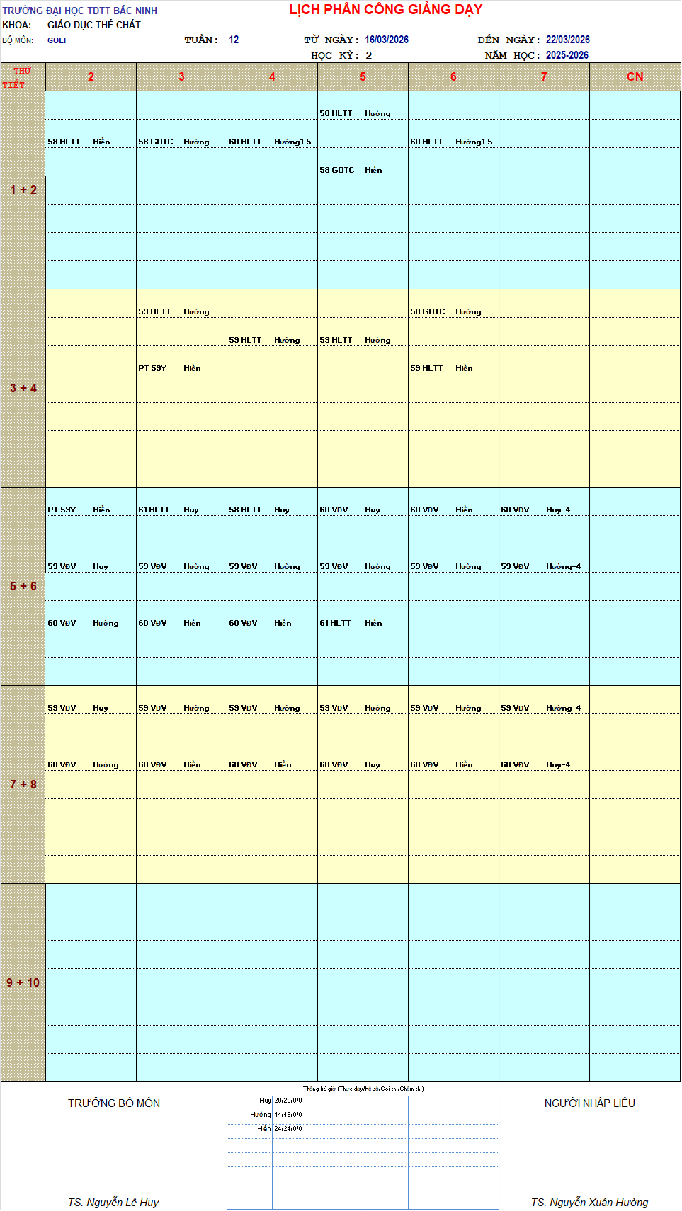 THỜI KHÓA BIỂU TUẦN 12