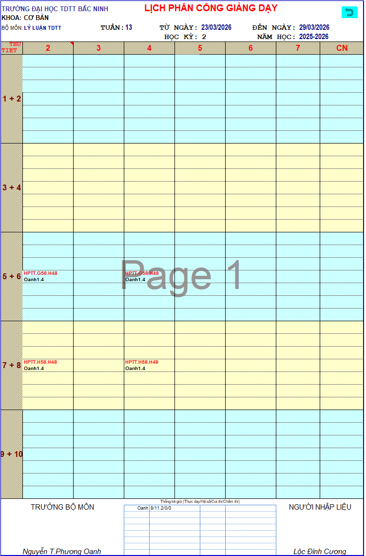 • Thời khóa biểu tuần 13 – Năm học 2025-2026