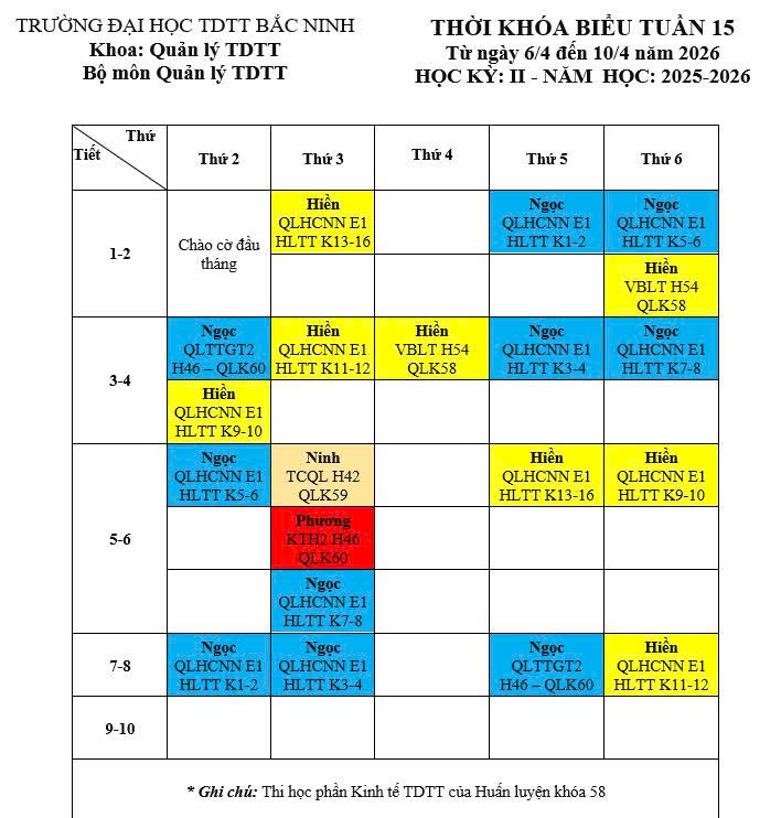 Thời khóa biểu tuần 15