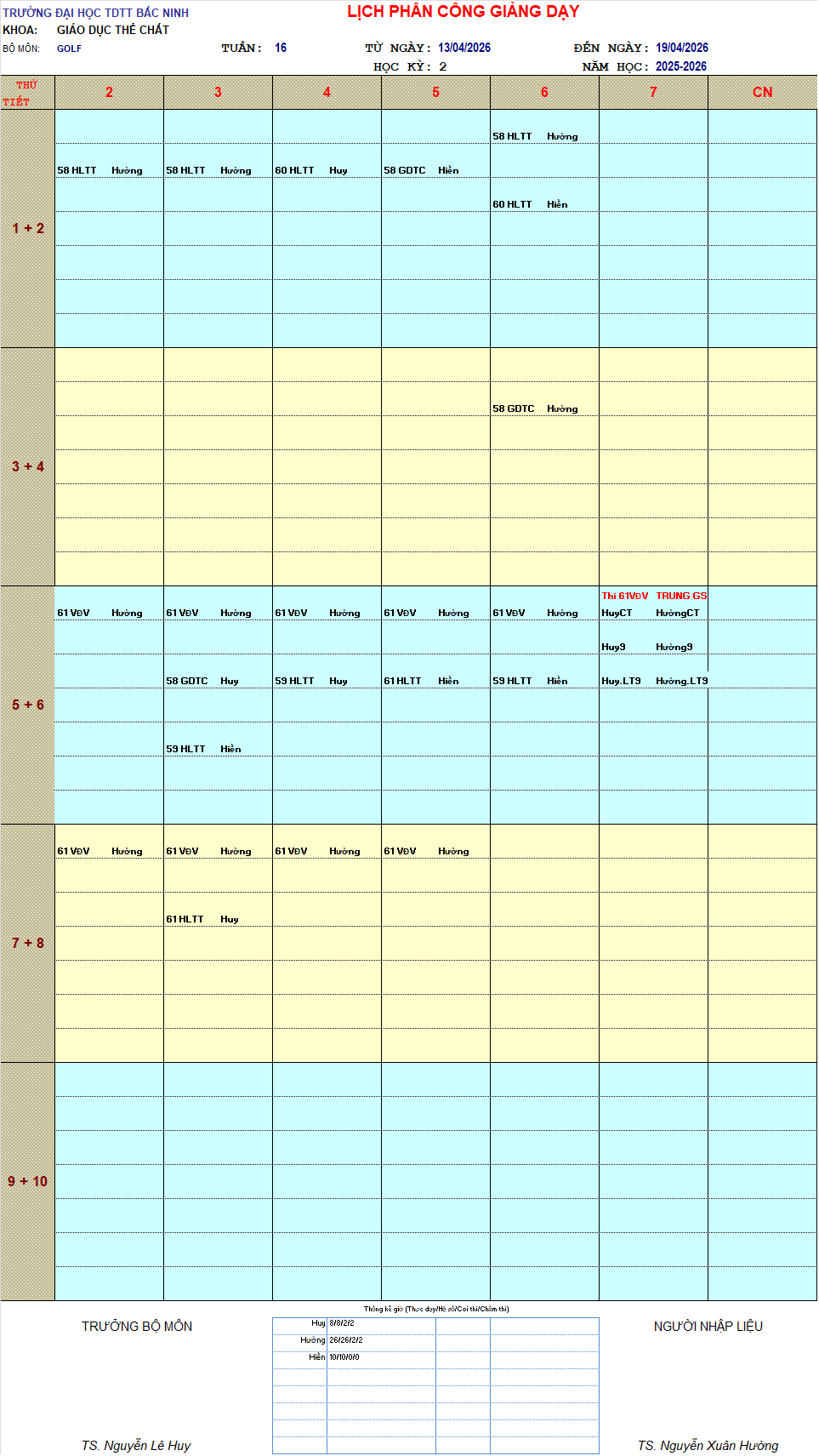 THỜI KHÓA BIỂU TUẦN 16