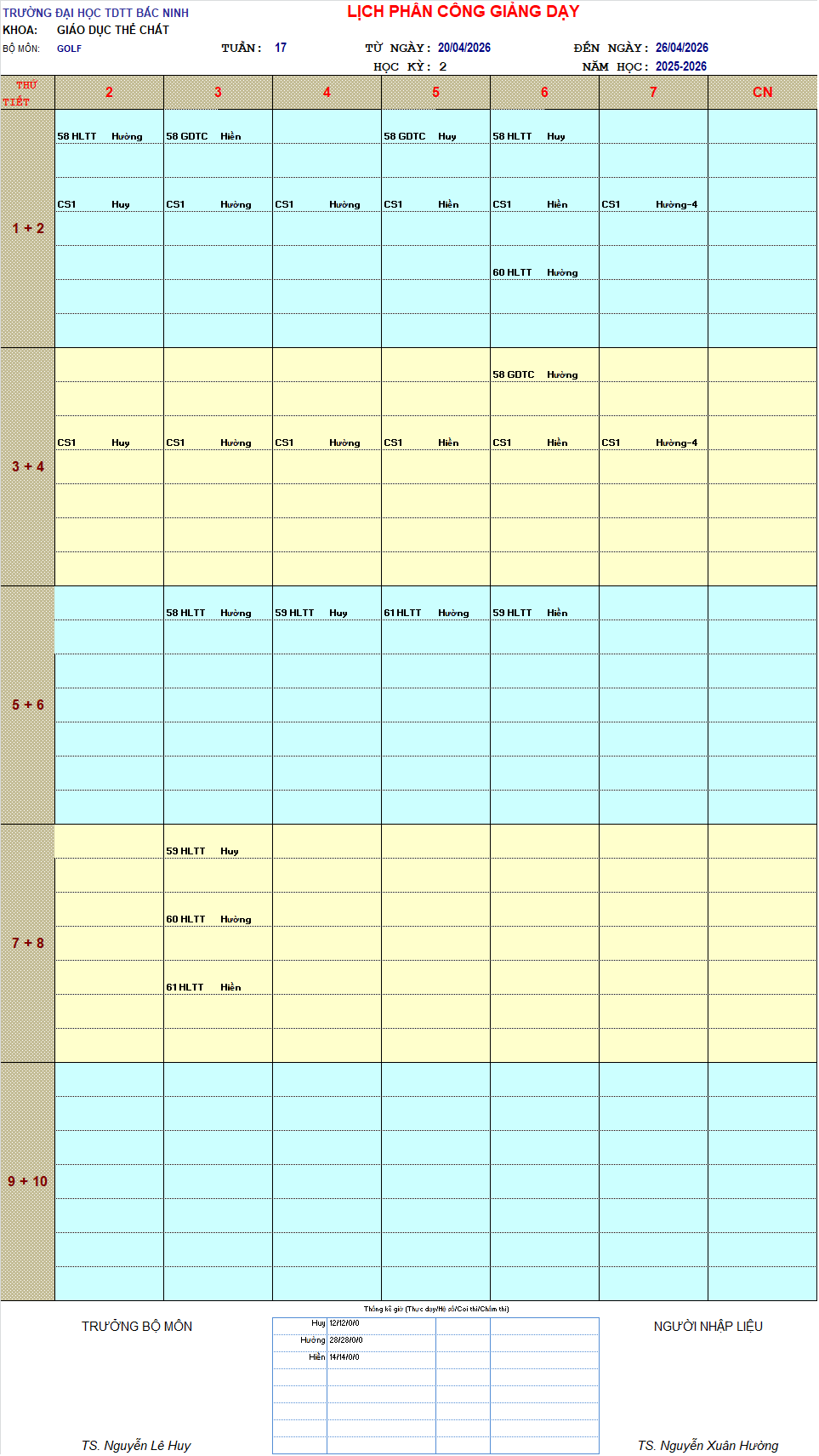 THỜI KHÓA BIỂU TUẦN 17