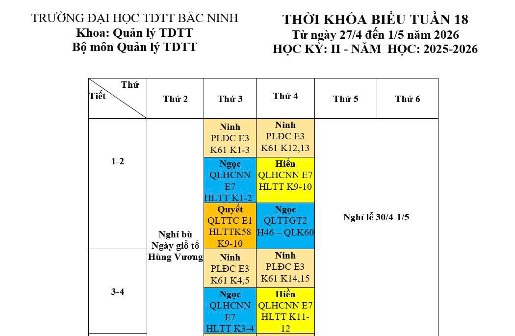 Thời khóa biểu tuần 18