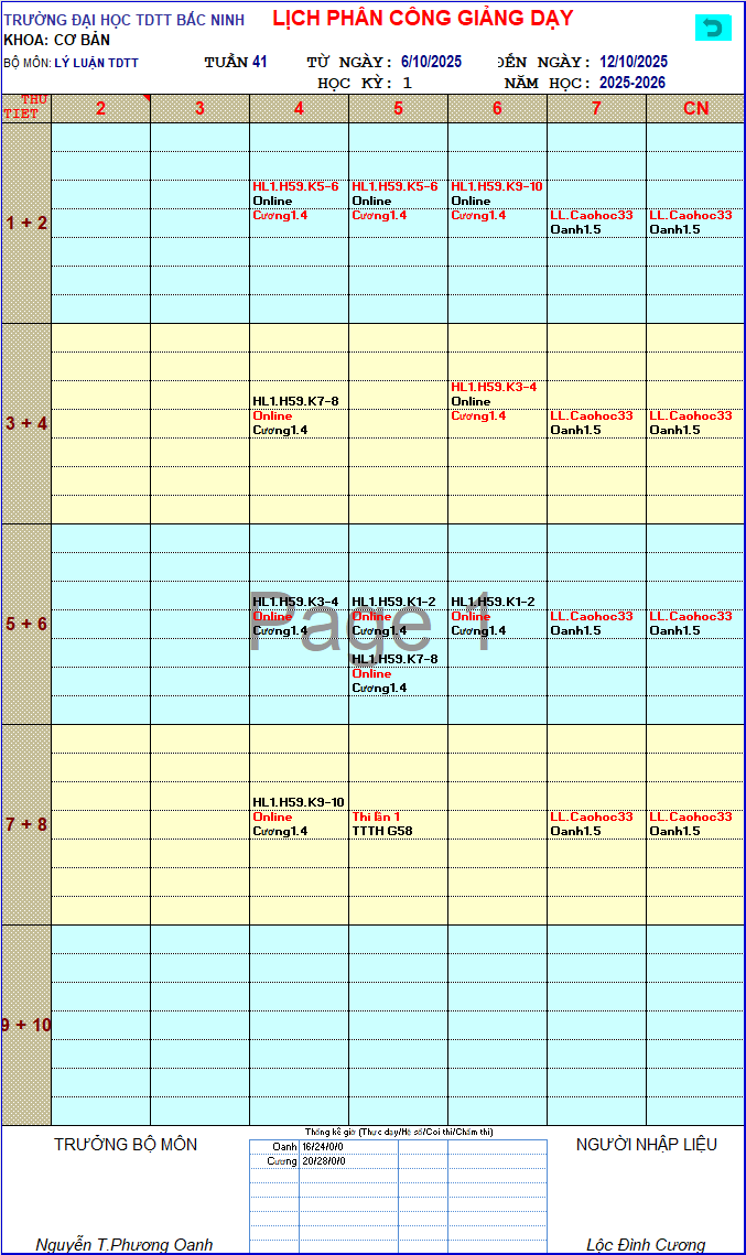 Thời khóa biểu tuần 41 – Năm học 2025-2026