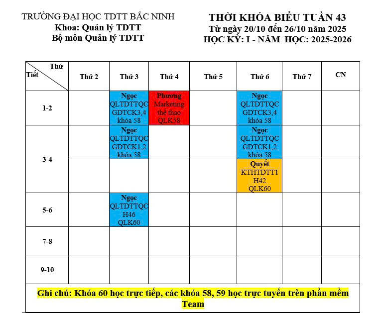 Thời khóa biểu tuần 43