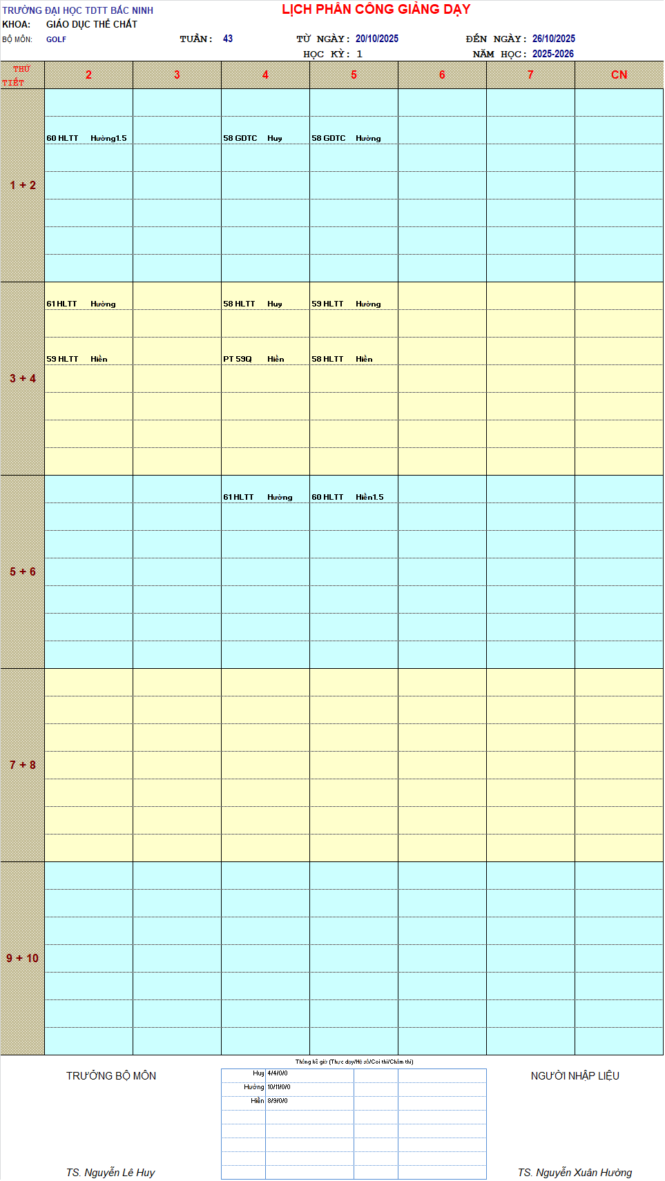 THỜI KHÓA BIỂU TUẦN 43