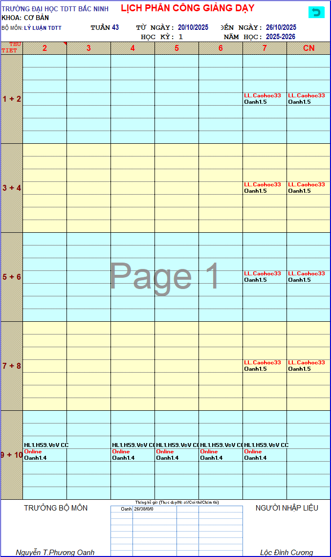 • Thời khóa biểu tuần 43 – Năm học 2025-2026