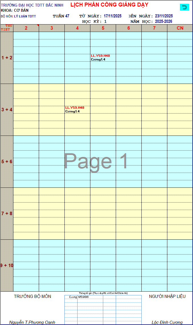 • Thời khóa biểu tuần 47 – Năm học 2025-2026