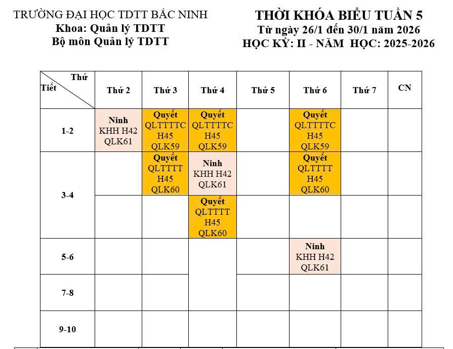 Thời khóa biểu tuần 5