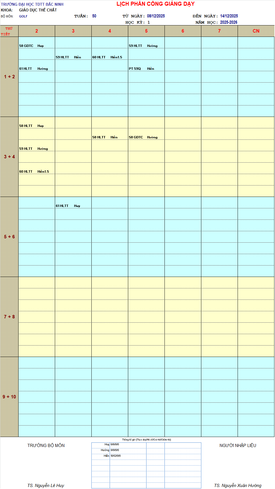 THỜI KHÓA BIỂU TUẦN 50