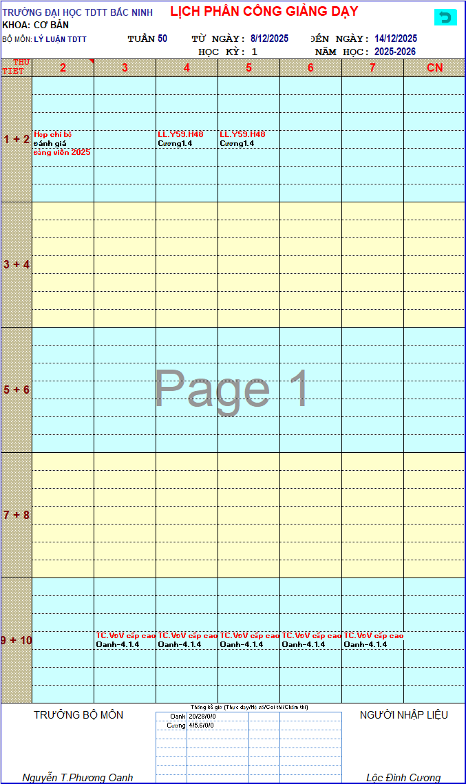 Thời khóa biểu tuần 50 – Năm học 2025-2026