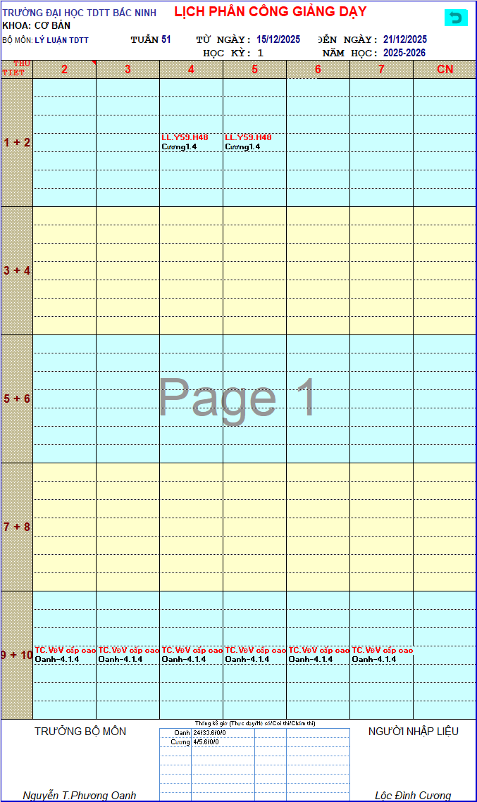 Thời khóa biểu tuần 1 – Năm học 2025-2026