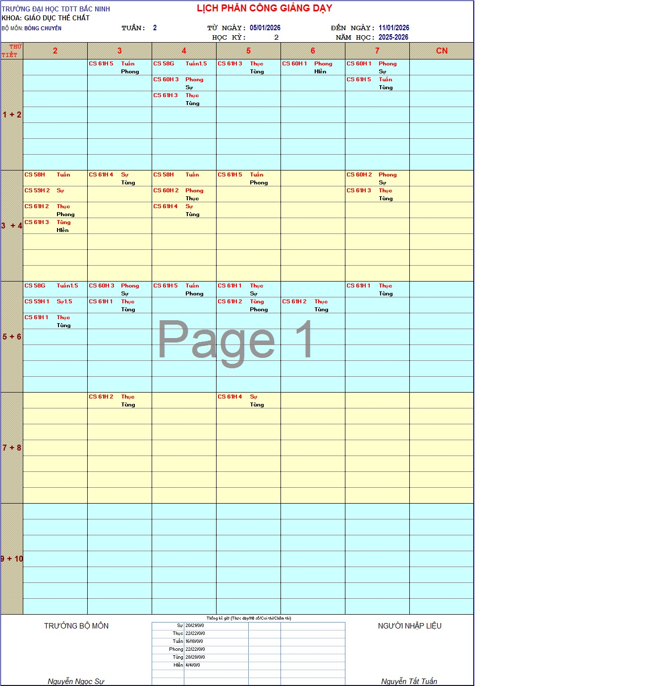 Lịch công tác CBNV