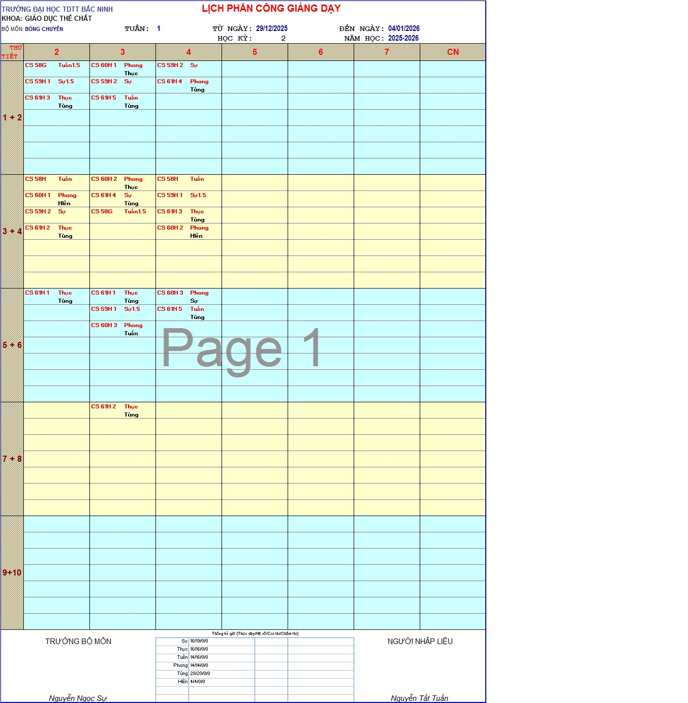Lịch công tác tuần