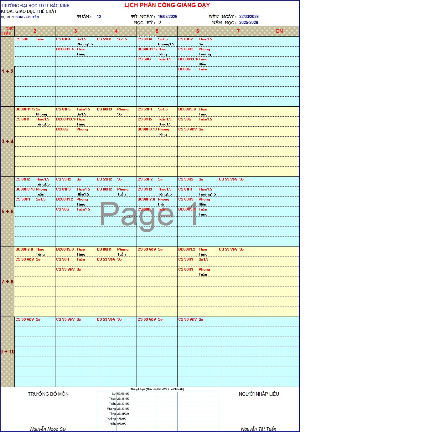 Lịch công tác CBNV