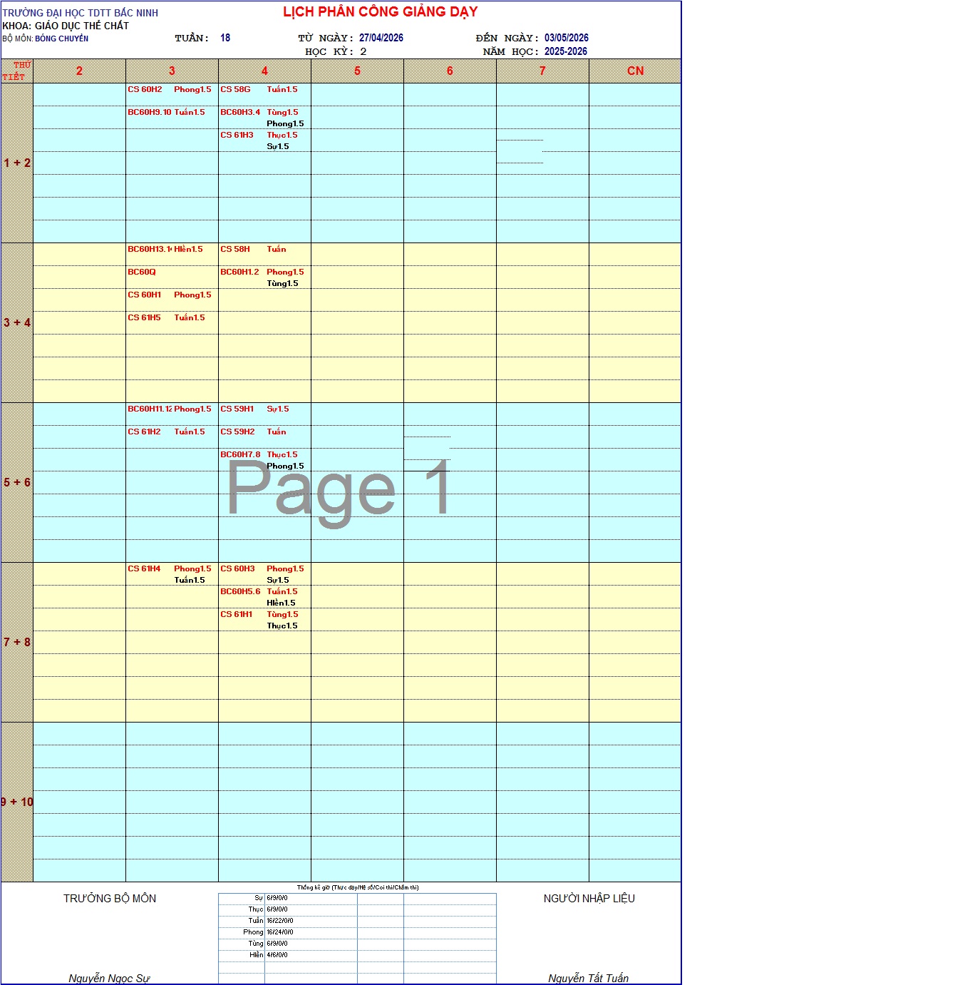 Lịch công tác tuần