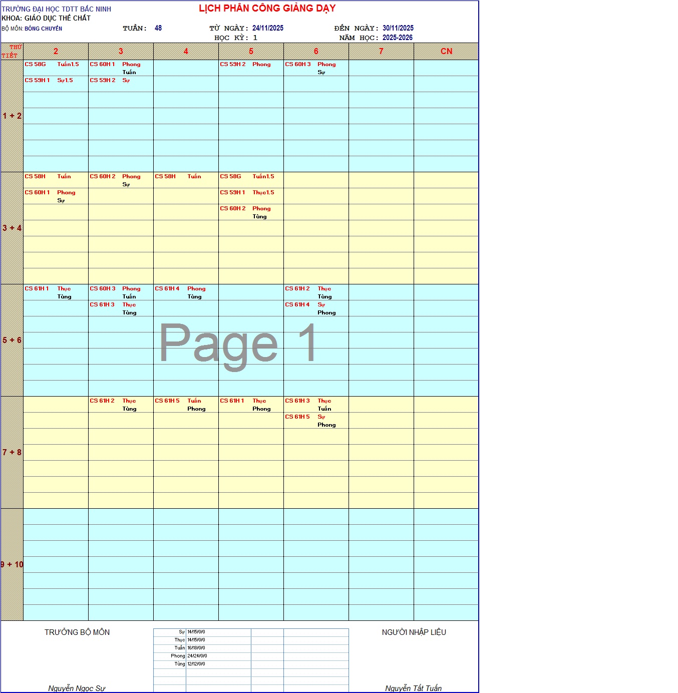 Lịch công tác CBNV