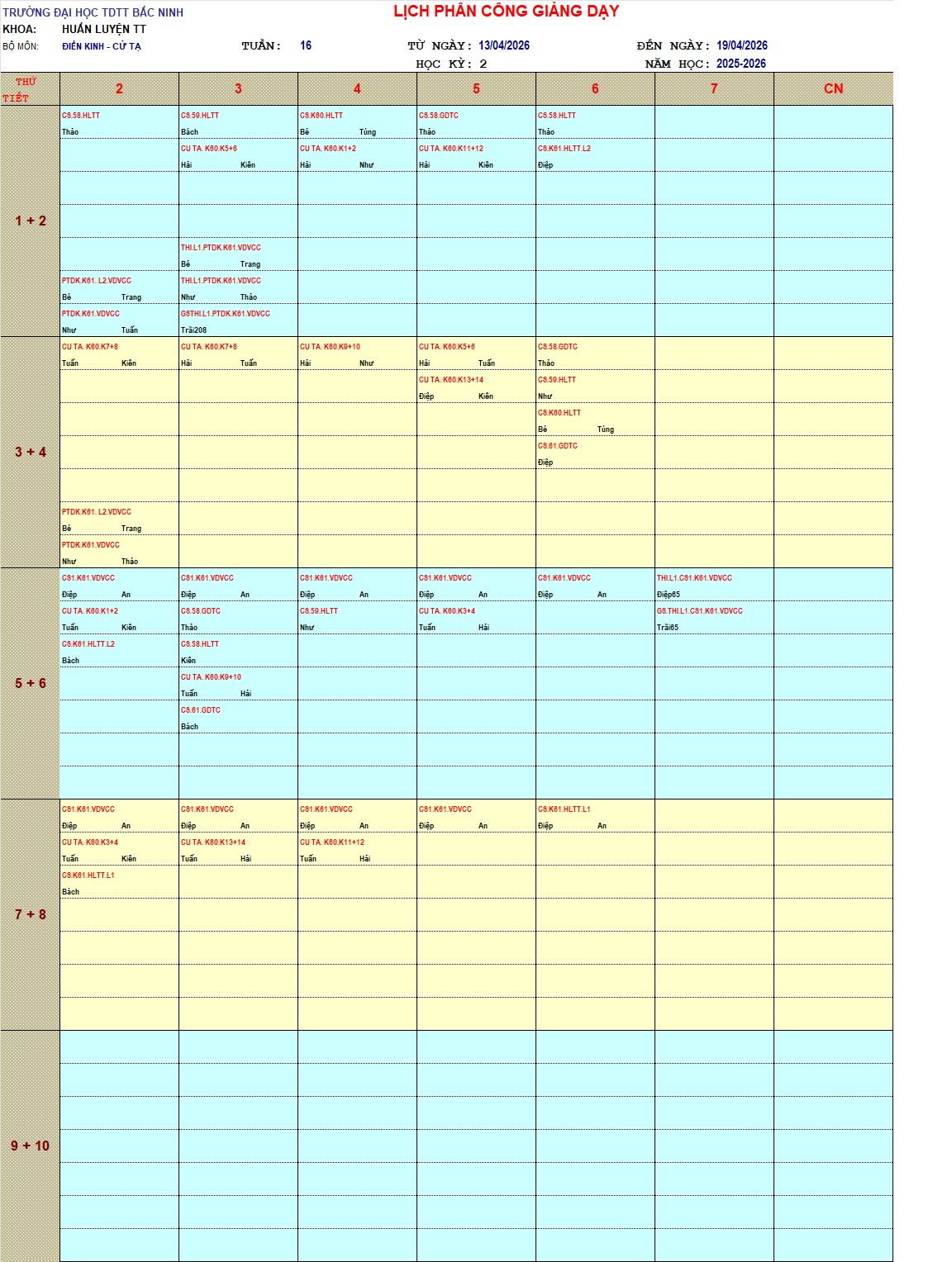 TKB. TUẦN 16