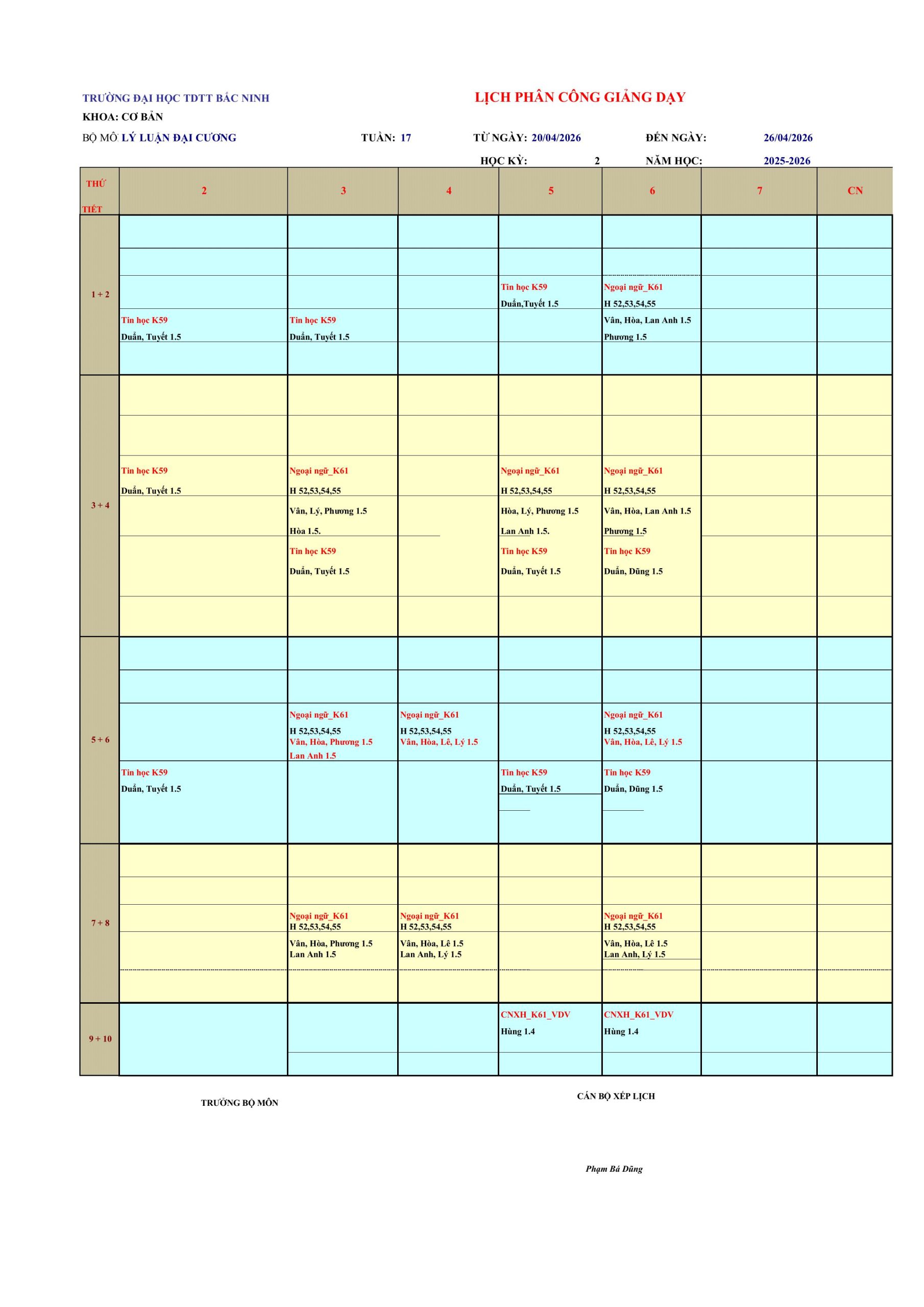 • TKB Tuần 17