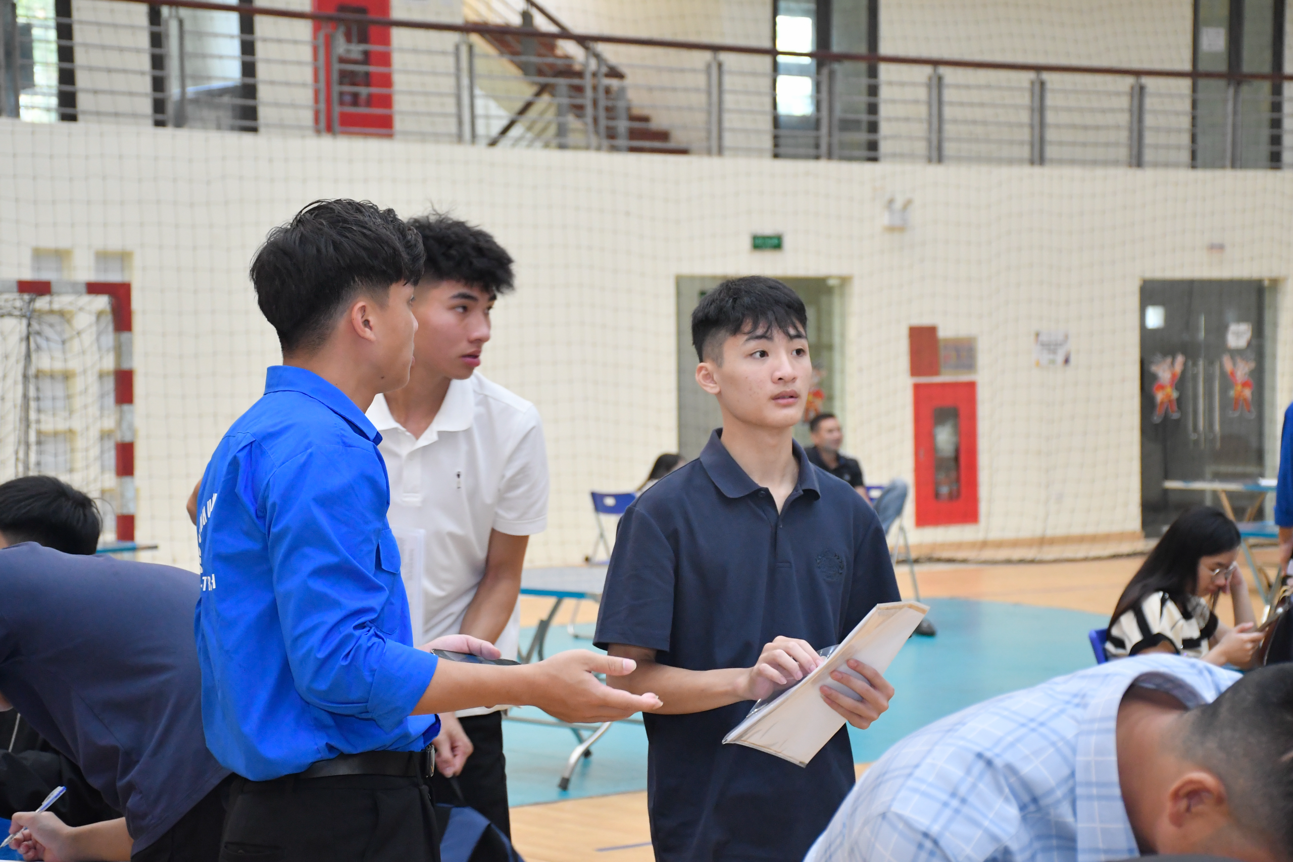 Trong thời gian làm thủ tục nhập học, lực lượng sinh viên tình nguyện được phân công hỗ trợ các em trong quá trình làm thủ tục, các anh chị tình nguyện viên đã rất hăng hái, nhiệt tình giúp đỡ phụ huynh và tân sinh viên bằng nhiều hoạt động thiết thực như: hướng dẫn phụ huynh và sinh viên đến địa điểm làm thủ tục, ghi thông tin trên hồ sơ, hướng dẫn quy trình làm thủ tục nhập học, đăng ký vào ở ký túc xá, đăng ký giáo trình, tài liệu học tập,…