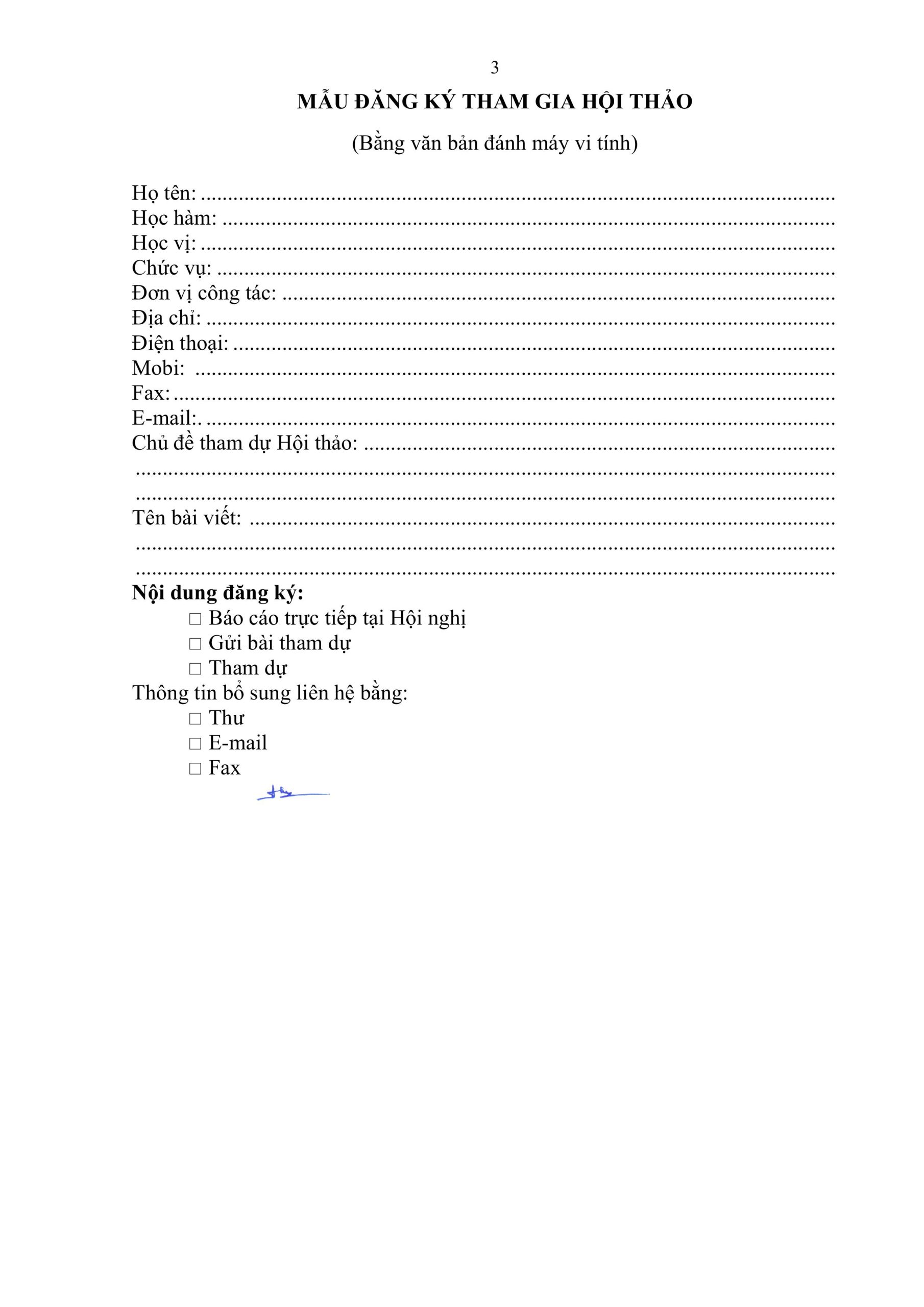 Thông báo số 01 về việc mời viết bài tham dự Hội thảo khoa học Quốc gia