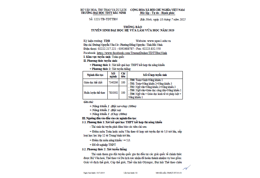 Thông báo tuyển sinh hệ vừa làm vừa học năm 2025