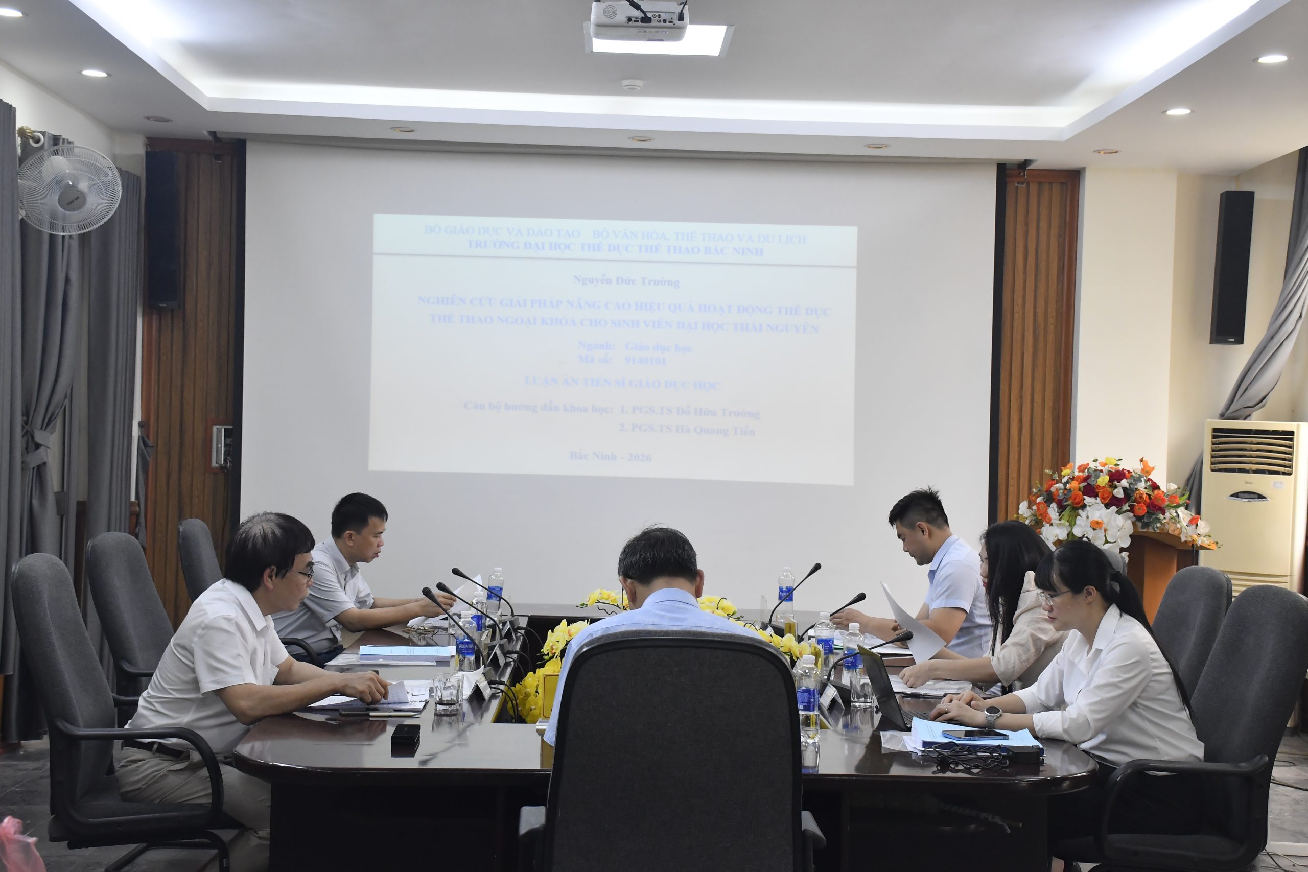 Hội đồng đánh giá luận án tiến sĩ cấp cơ sở được thành lập với 07 thành viên là các nhà khoa học, chuyên gia có uy tín, giàu kinh nghiệm trong lĩnh vực giáo dục học và thể dục thể thao. Hội đồng do PGS.TS. Đặng Văn Dũng làm Chủ tịch; TS. Mai Thị Bích Ngọc giữ vai trò Ủy viên thư ký, cùng các phản biện và ủy viên là các nhà khoa học đến từ Trường Đại học TDTT Bắc Ninh và các cơ sở đào tạo uy tín như Đại học Đà Nẵng, Đại học Thái Nguyên, Đại học Vinh.